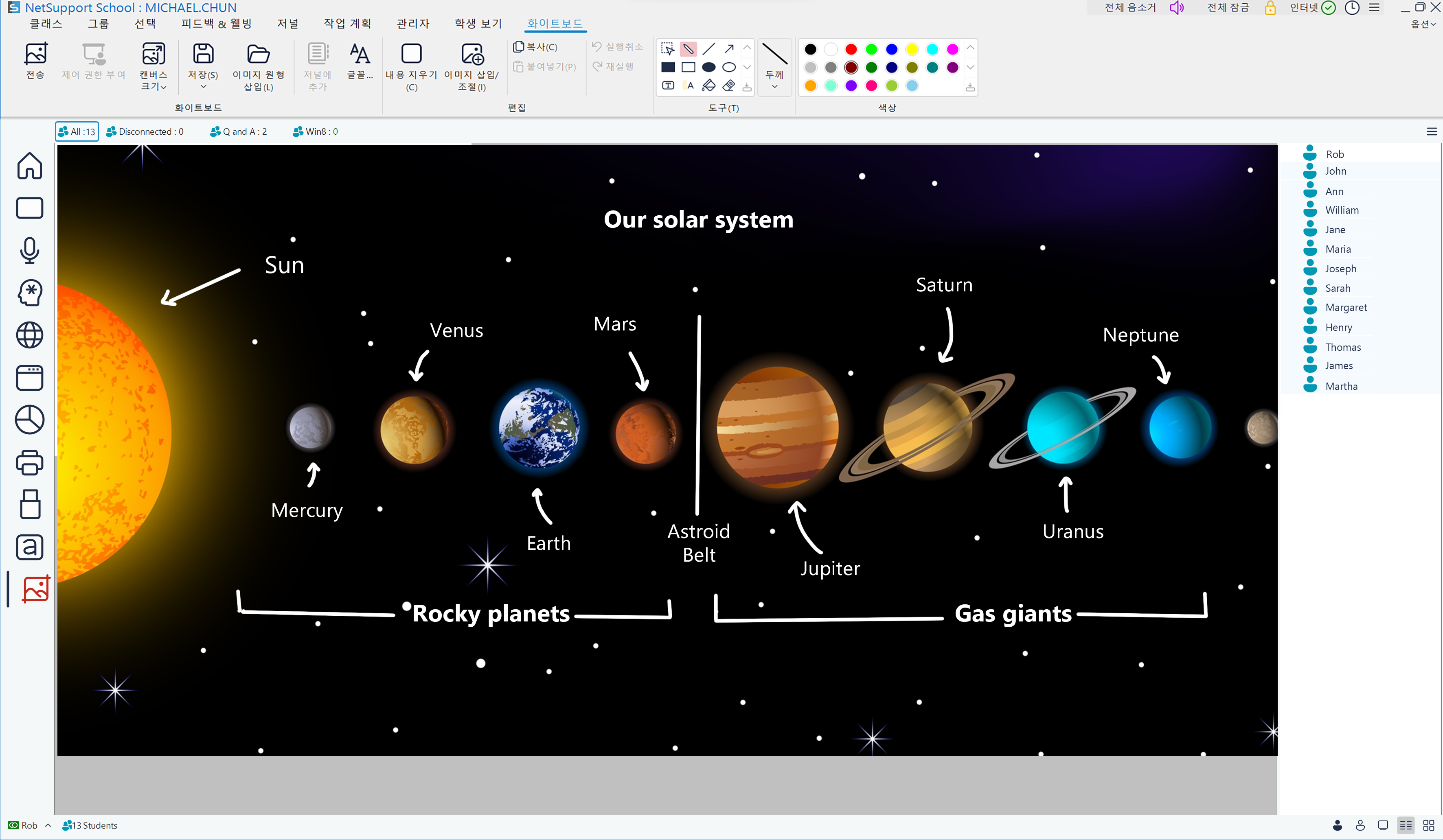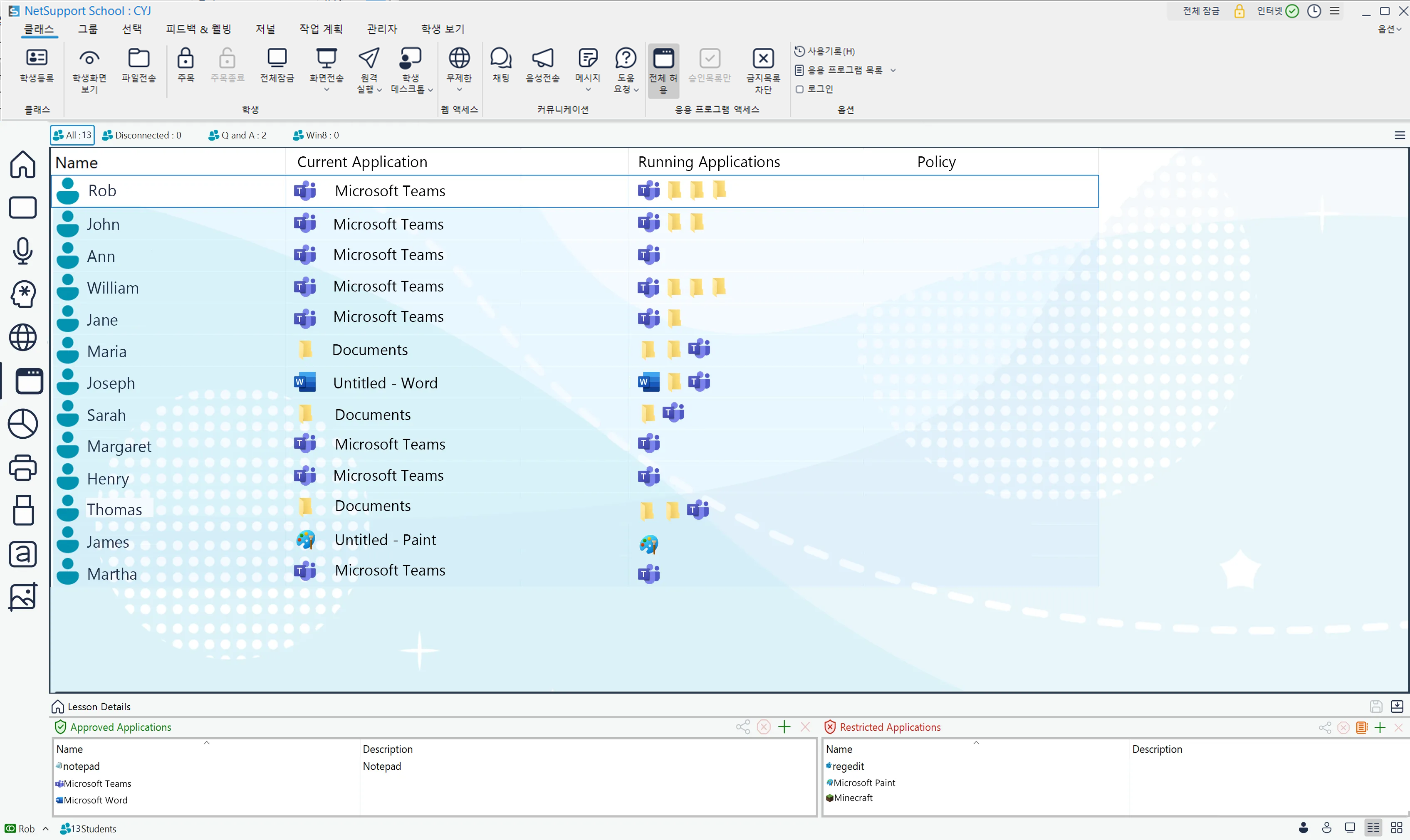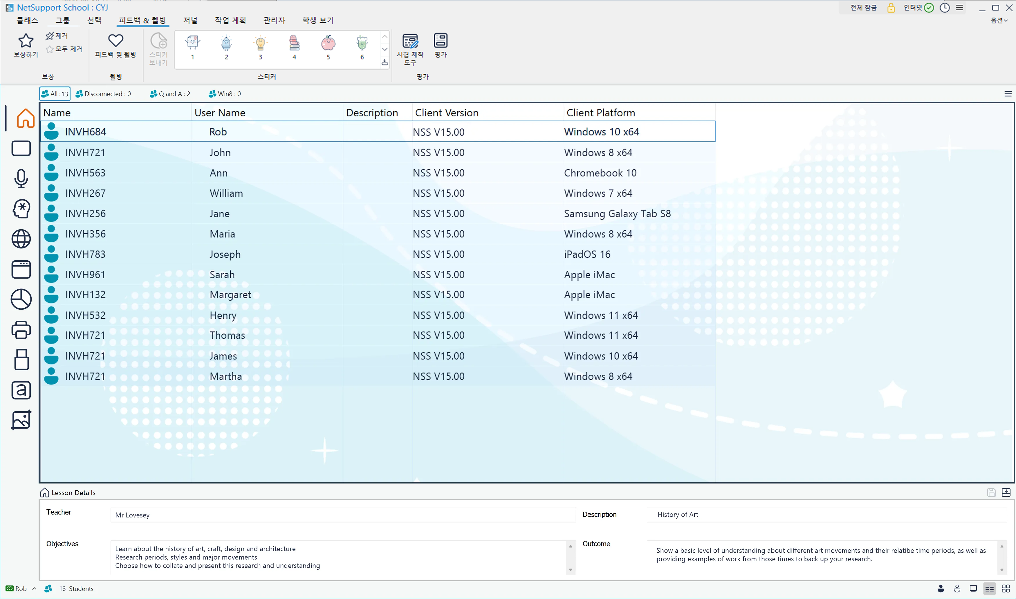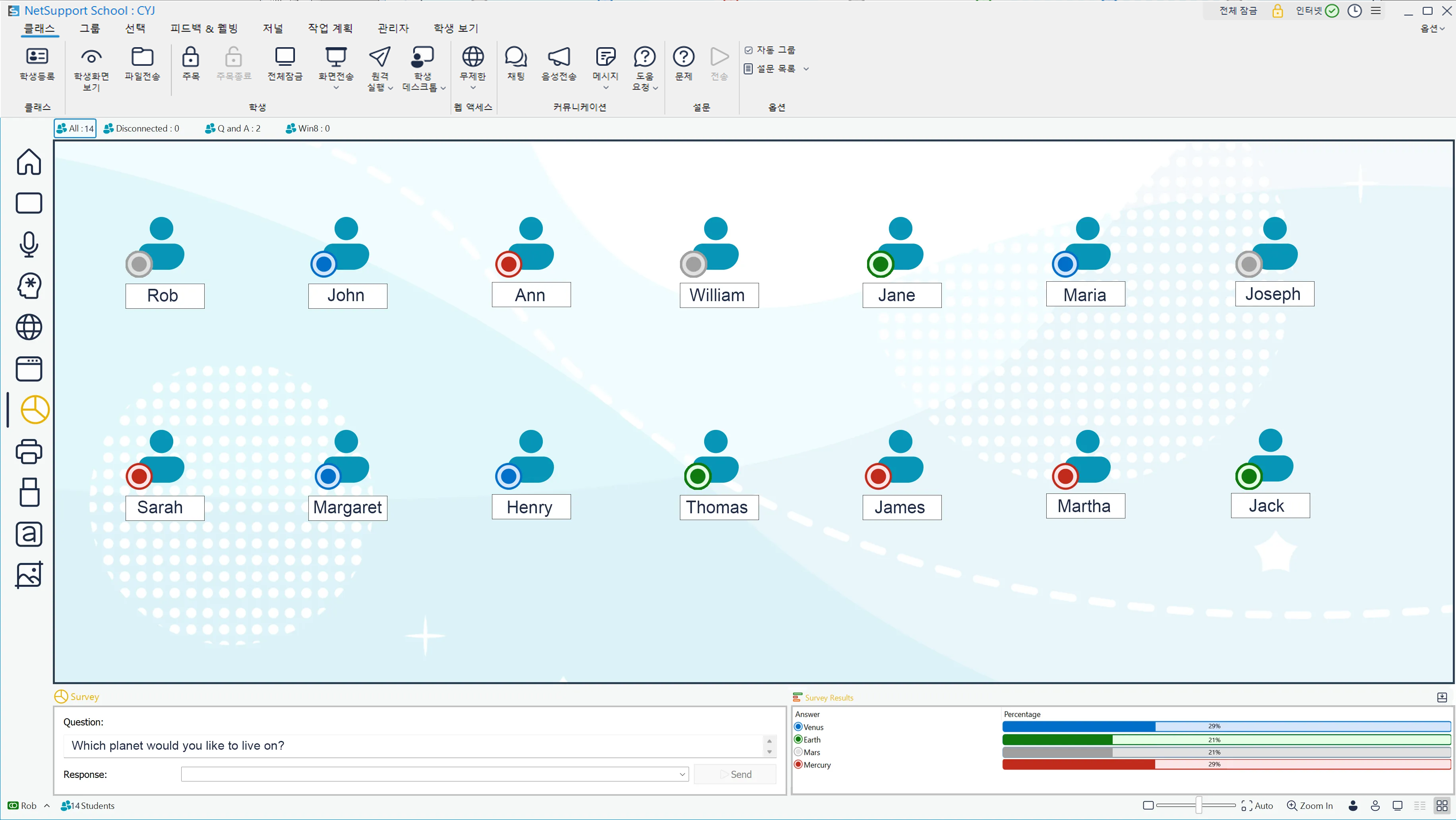 갤러리 – 윈도우 (모든 UI 메뉴는 한글로 제공됨) 교사 콘솔 학생 - 윈도우 테크 콘솔 - 윈도우 특장점/주요기능 사용 편리 빠른 수업 시작 몰입도 높은 수업 진행 학생 집중 및 흥미 유도 학생 협업 지원 학습 성과 보상 게임식 수업 이해도 평가 언어 학습 지원 비용 절감 및 보안 강화 기술 담당자용 도구 플랫폼 윈도우 안드로이드 / iOS 크롬 macOS 개인용기기(BYOD) 씬 클라이언트 도입효과/리소스 도입효과 효과증명 고객평가 사용후기 수상실적 매뉴얼 온라인 교육 신청 장애학생지원(SEND) 고등교육기관 사용 기업 사용 갤러리 회사 소개 회사 소개 연락처 유튜브↗ 게시판 전국 교육청용 서비스 사이트 NSS v15.00 웹 사이트 클래스룸.클라우드(classroom.cloud) NSS 구 버전(v14)